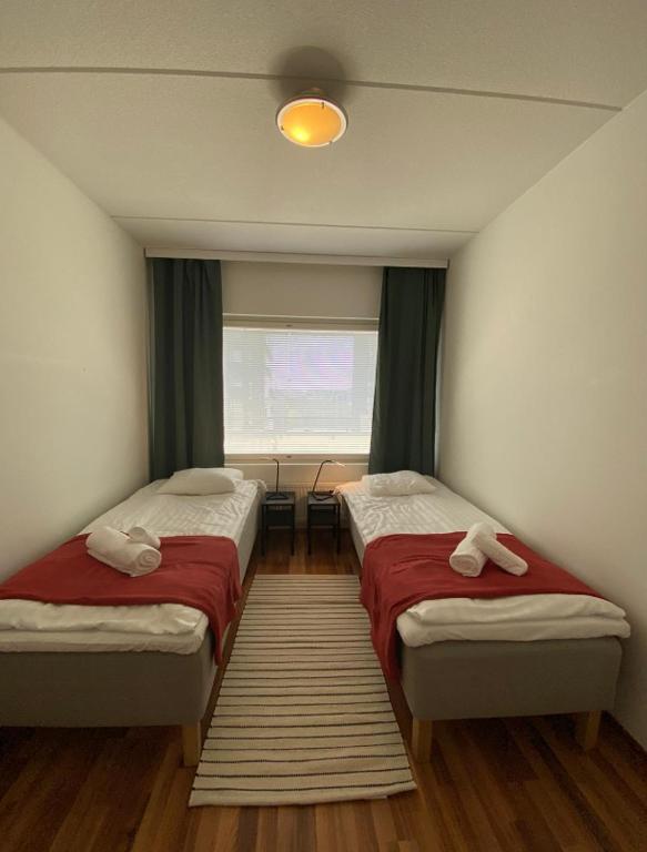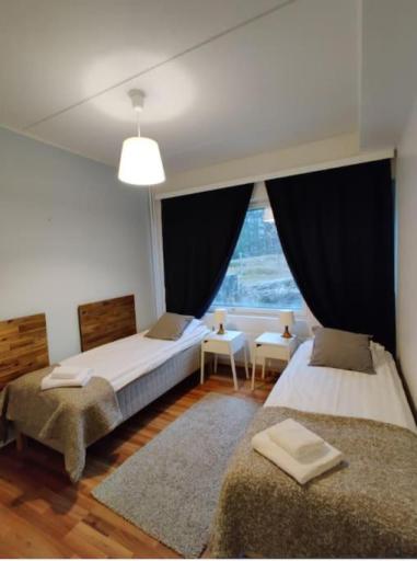 Kotimaailma - Saunallinen kolmio lähellä lentokenttää är ett bekvämt och välutrustat boende beläget i Vanda, bara 2 km från Helsingfors-Vanda flygplats. Detta gör det till ett utmärkt val för resenärer som behöver en övernattning i samband med en flygresa eller flygbyte. Lägenheten erbjuder två sovrum, vilket gör den idealisk för både familjer och små grupper. För att säkerställa en bekväm vistelse finns en platt-tv, ett fullt utrustat kök med kylskåp och diskmaskin, samt en tvättmaskin.