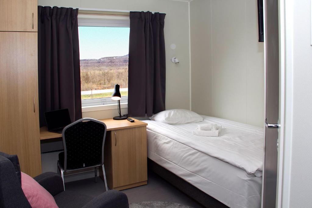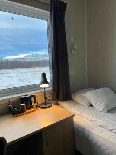 På Kiruna City Room har varje rum skrivbord, tv, eget badrum och sängkläder. I samtliga rum finns en garderob och en kaffemaskin.