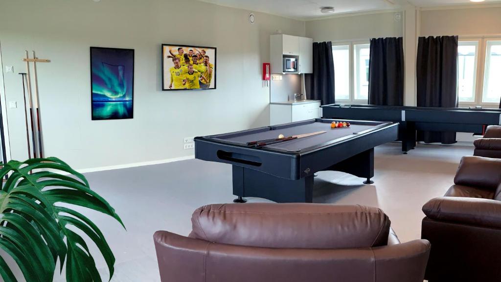 Du kan spela biljard på boendet.