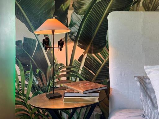 Lägenheten har ett sovrum och ett badrum, vilket gör den idealisk för par eller ensamresenärer. Sängkläder och handdukar ingår, vilket gör det enkelt att packa lätt. I vardagsrummet finns en platt-tv med satellitkanaler för underhållning, och matplatsen är perfekt för att njuta av en måltid. Köket är fullt utrustat, vilket ger möjlighet att laga mat själv om så önskas. Dessutom finns en balkong med utsikt över trädgården, där du kan njuta av en kopp kaffe eller bara koppla av efter en lång dag.